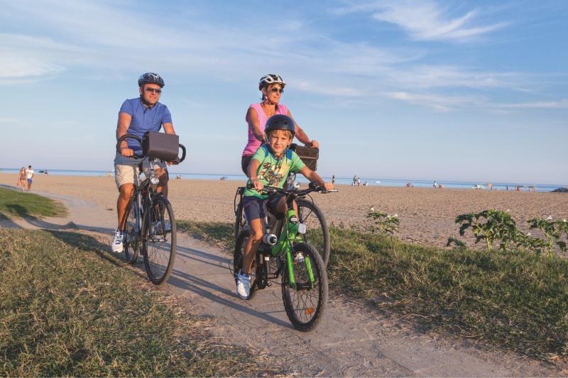 You can rent a bicycle with bike helmet, child seat and backpack from us, or use yours.